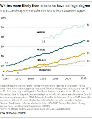 of 25 have at least a bachelor’s degree compared with only 23 percent of blacks.